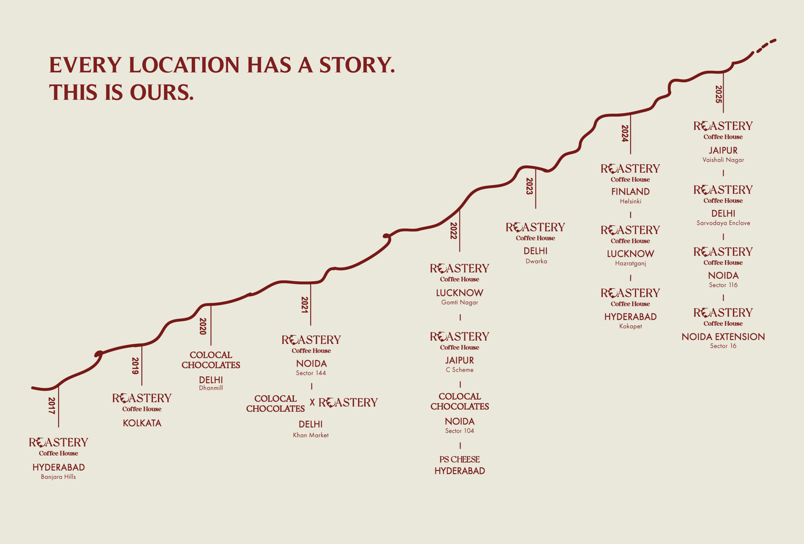 Each year added a new café to the journey, always as a considered step forward. From the first ever Roastery in Hyderabad to the many spaces that followed panning across various cities in India: Kolkata, Jaipur, Lucknow, Delhi and Delhi NCR, and a little touch of Indian Speciality Coffee across the world in Helsinki, Finland, every opening marked a moment of learning: about the city, its people, and how coffee fits into daily life there.